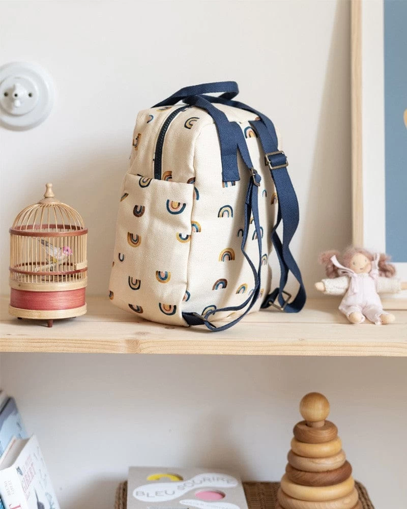 This adorable little toddler backpack is the perfect companion to take your children to nursery school, to kindergarten, to their grandparents house , or to meet friends. This Rainbow backpack for kids will fit cuddly toys, a little snack, and all kinds of well-kept treasures.Â