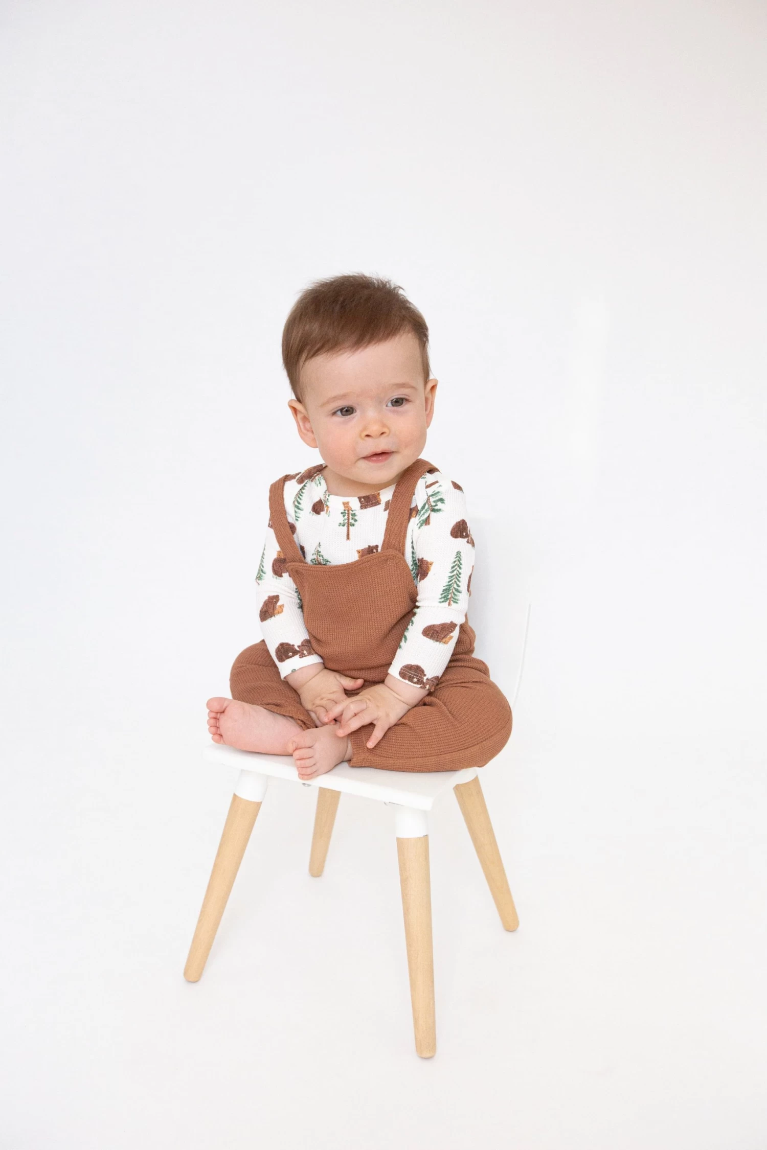 Our adorable bodysuits are so versatile. Can be layered under our corduroy overalls for an outfit or worn alone.