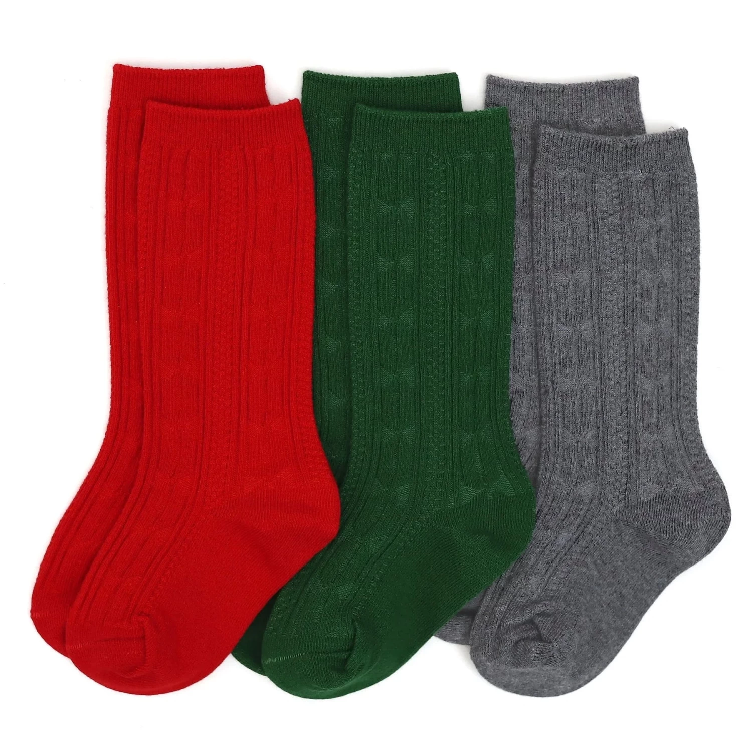 Each 3-Pack includes one of each of the following cable knit knee highs: