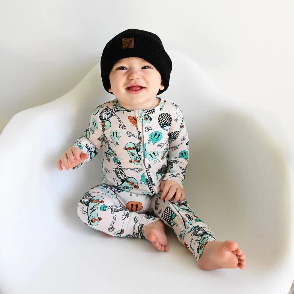 This zip one piece is super soft and comfortable. Featuring a zipper that runs from the top of the outfit to the ankle. Our favorite part about this outfit is that the zipper is 2 way! Making for super easy diaper changes without having to remove the whole outfit.