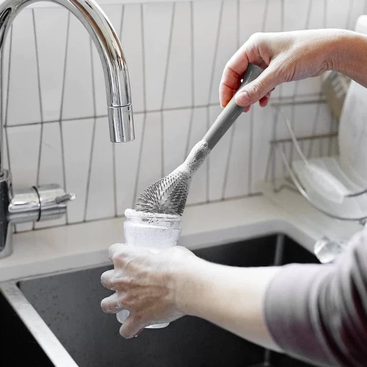 - Long, sturdy handle cleans bottles, water bottles, cups and cookware