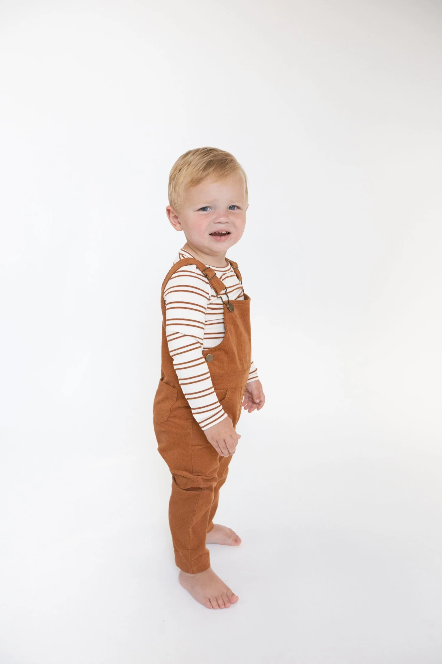 Our adorable bodysuits are so versatile. Can be layered under our corduroy overalls for an outfit or worn alone.