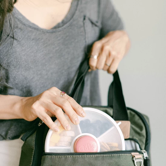 The GoBe Snack Spinner is the only spill proof snack container that allows your child to choose between five different snacks at once! With the push of a button, your child can jump from snack-to-snack, all while reducing spills and mess! More snacking variety for them, less mess for you.
