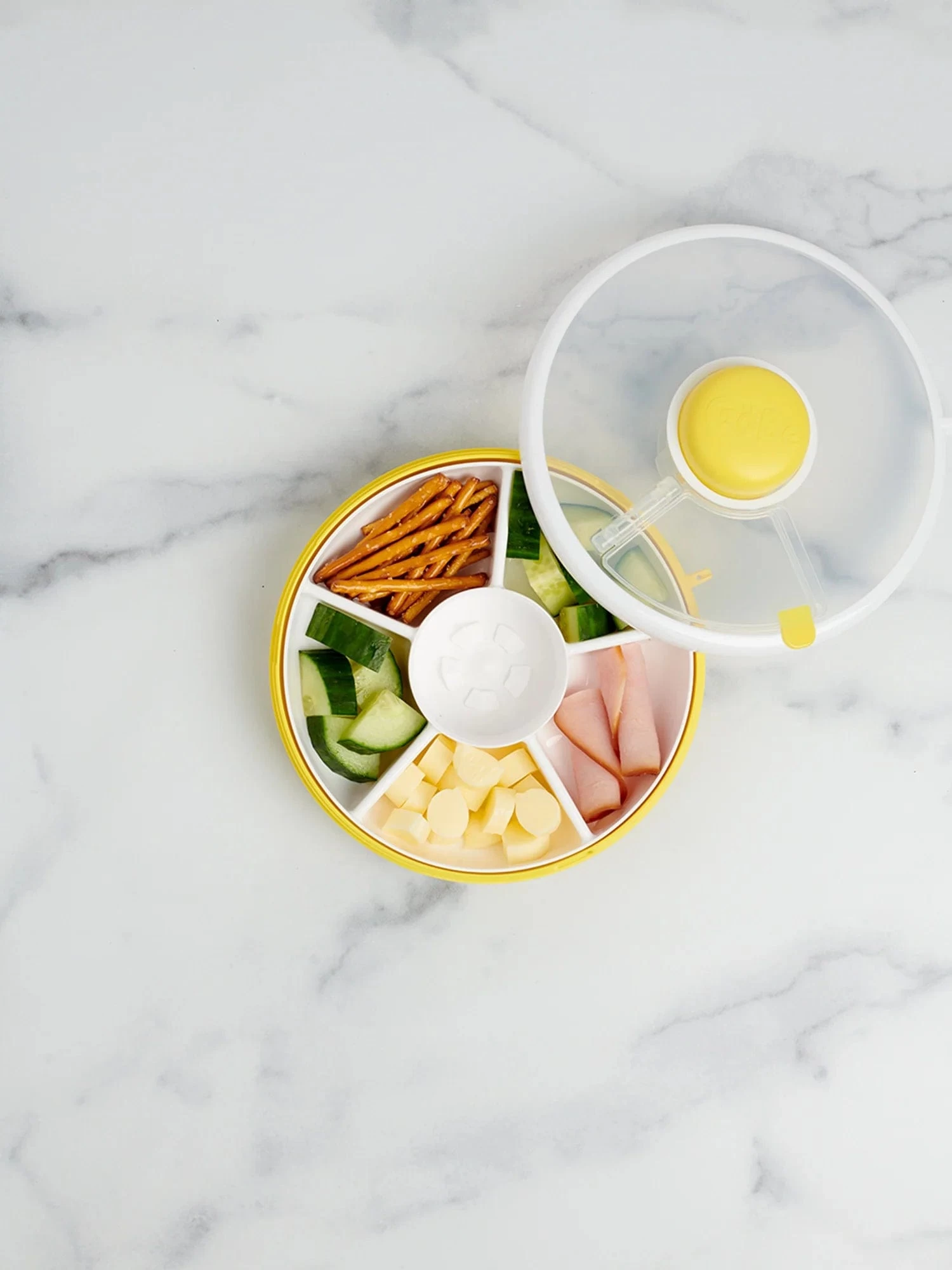 The GoBe Snack Spinner is the only spill proof snack container that allows your child to choose between five different snacks at once! With the push of a button, your child can jump from snack-to-snack, all while reducing spills and mess! More snacking variety for them, less mess for you.