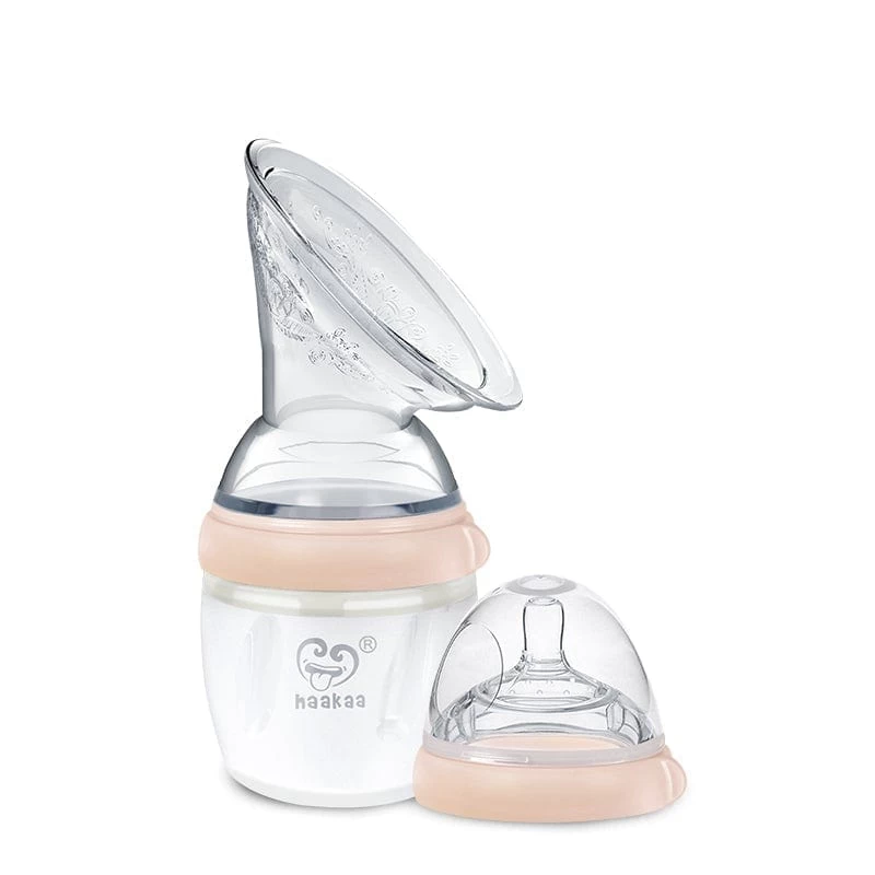 Get the Haakaa Gen. 3 Baby Bottle and Silicone Flange in one handy combo! Express directly into the detachable silicone bottle with the pump flange, then swap the attachment to the baby bottle nipple for easy feeding!
