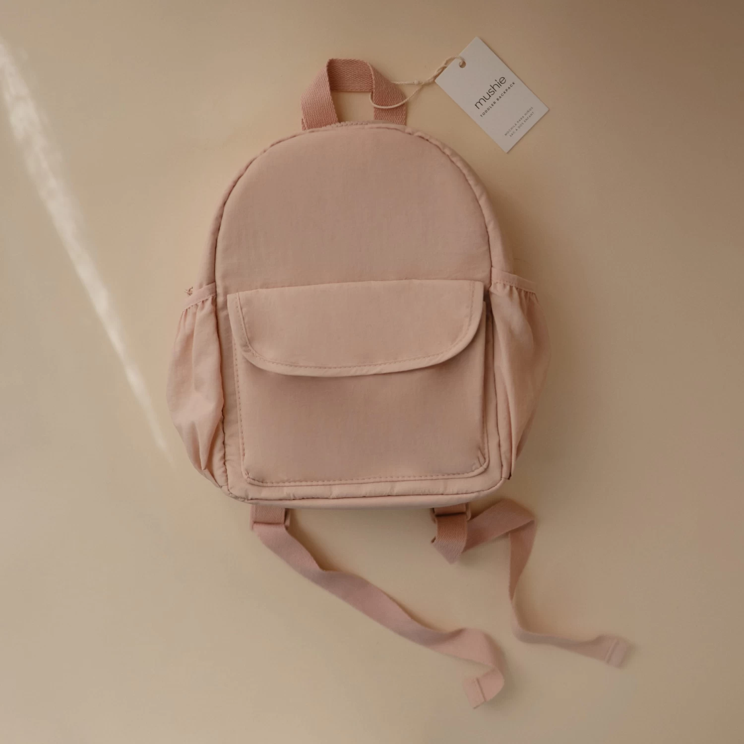 - Side pockets designed to hold a standard water bottle or toddler’s sippy cup