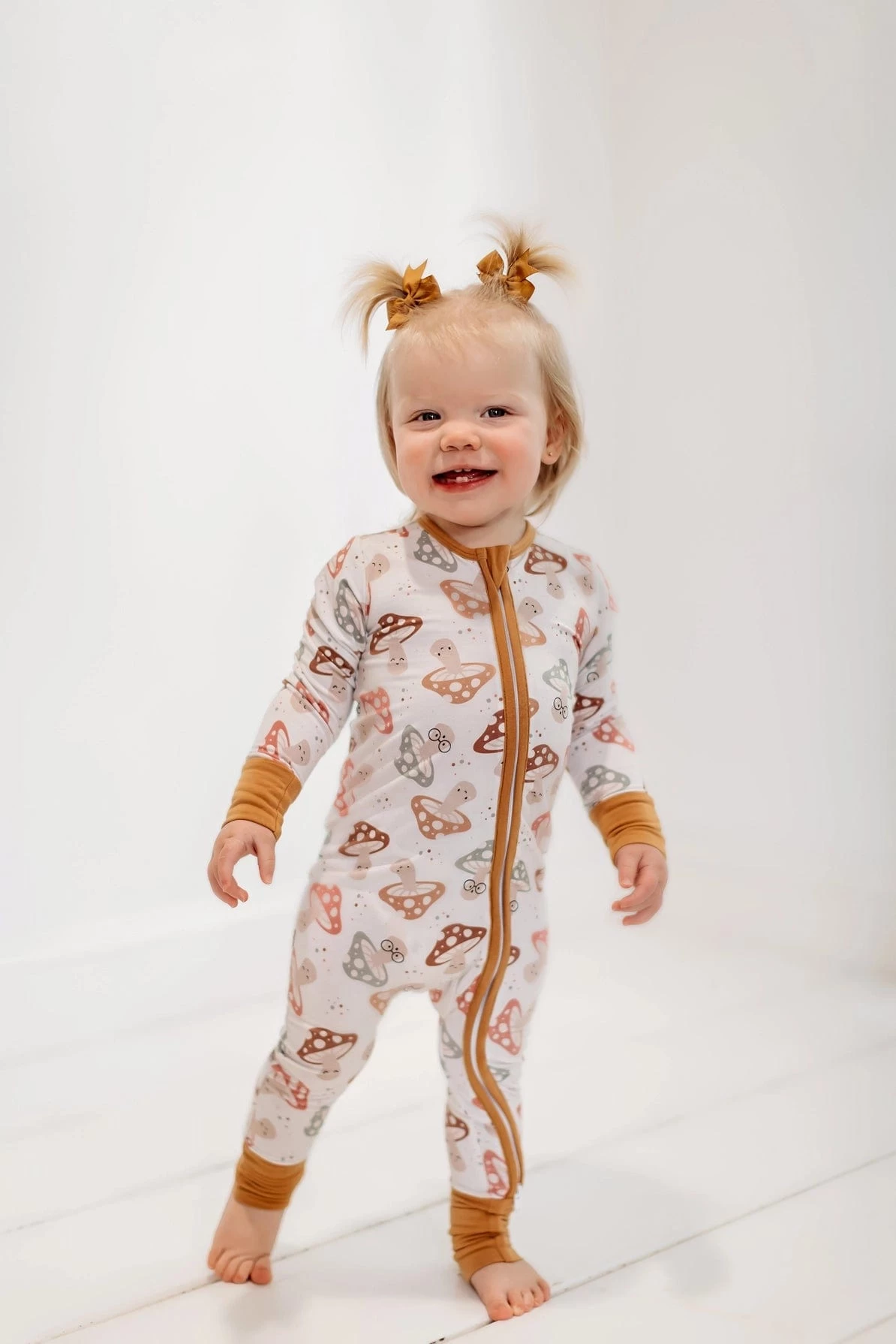 Stay stylish and comfortable in the Mushroom Mania Zippy Romper. Crafted with ethically sourced materials and soft bamboo fabric, this romper is certified OEKO-TEX for superior quality assurance. Featuring a relaxed fit, fold over hands and feet, and optional feet grips, this one-piece provides all-day comfort and convenience.