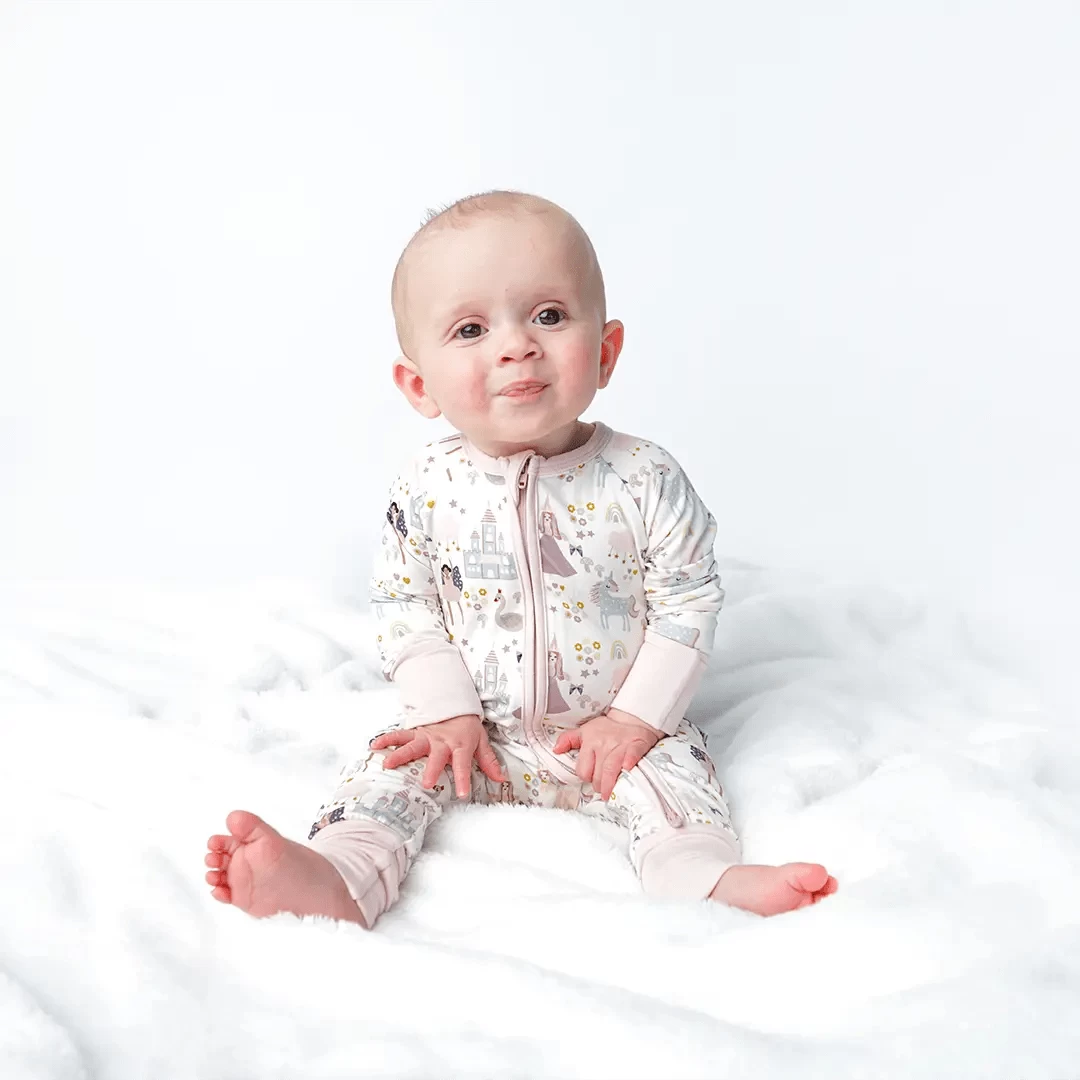 Say goodbye to bedtime battles with this enchanting bamboo convertible baby pajama. With a dreamy blend of soft fabric and magical unicorns and princesses your little one will feel like they’ve stepped into a magical dreamland. Check out more with this print for the cutest sibling match, or pair it with our Ever After pattern, our fairy tale print for boys!