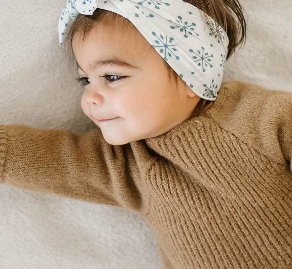 This headband is one size fits most and the size cannot be adjusted. The headband is sewn at a 6.5″ diameter (13″ circumference), keep in mind that measurement is before it stretches. We feel this is the perfect size for our soft material to fit a newborn and stretch comfortably as she grows into childhood. The bow measures approximately 4.5″ across. All edges of this style are raw and are intended to roll. This style is secured with adhesive once tied and is not meant to be untied. The printed material is a soft nylon/spandex blend. Each headband is hand sewn and tied by women in our local community. Due to the nature of small-batch production color and sizing can vary slightly.