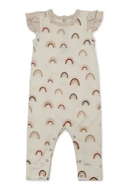 Made from our signature ultra-soft and sustainable Tencel™ Lyocell and organic cotton jersey knit fabric, our baby girl’s romper is as cute as it is comfortable. It features a ruffled shoulder with snaps opening on the back and bottom pants for easy dressing. This stylish romper is made for movers and shakers!