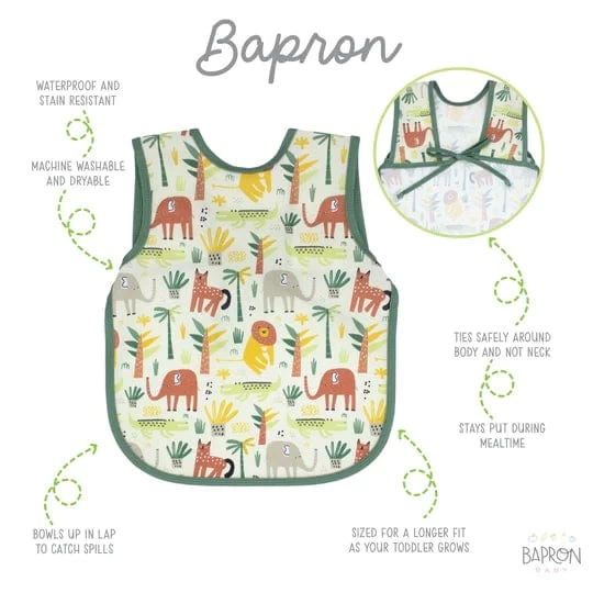 This best-selling “Bapron”, also known as a bib-apron hybrid, full-coverage bib, smock, or apron, is designed for comfort and safety. Because of their comfortable, secure-fitting horizontal ties and their full-coverage design, Baprons are the perfect companion for mealtime, art, and sensory play!