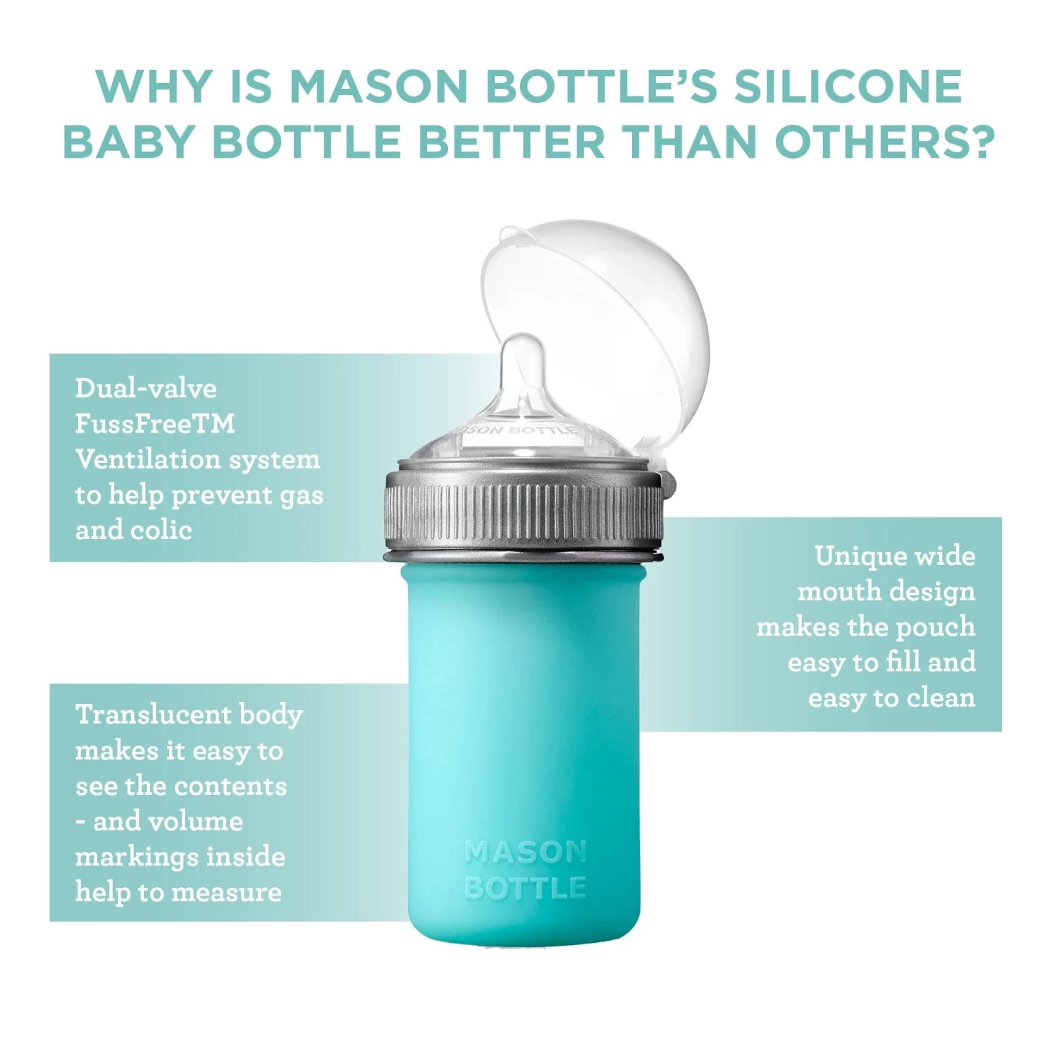 Lightweight and durable silicone allows for the tiniest hands to comfortably hold. The shoulder-less design means no hard to clean places, and no need for bottle brushes. Versatile product that allows you to upcycle to a snack cup or squeeze pouch.
