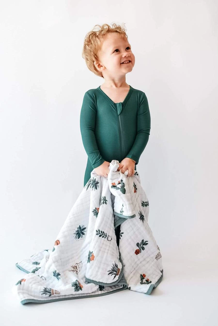 Everything you love about our soft and snuggly classic footies now with a zipper! The dual zipper option makes wardrobe or diaper changes a breeze. Made from our silky smooth bamboo rayon creating a cool outfit in a rainbow of modern, earthy colors. The stretchy material gives you the option to have a snug or looser fit while still staying comfortable and stylish. For those babies starting to walk we now have grips starting on sizes 6-12 Months.