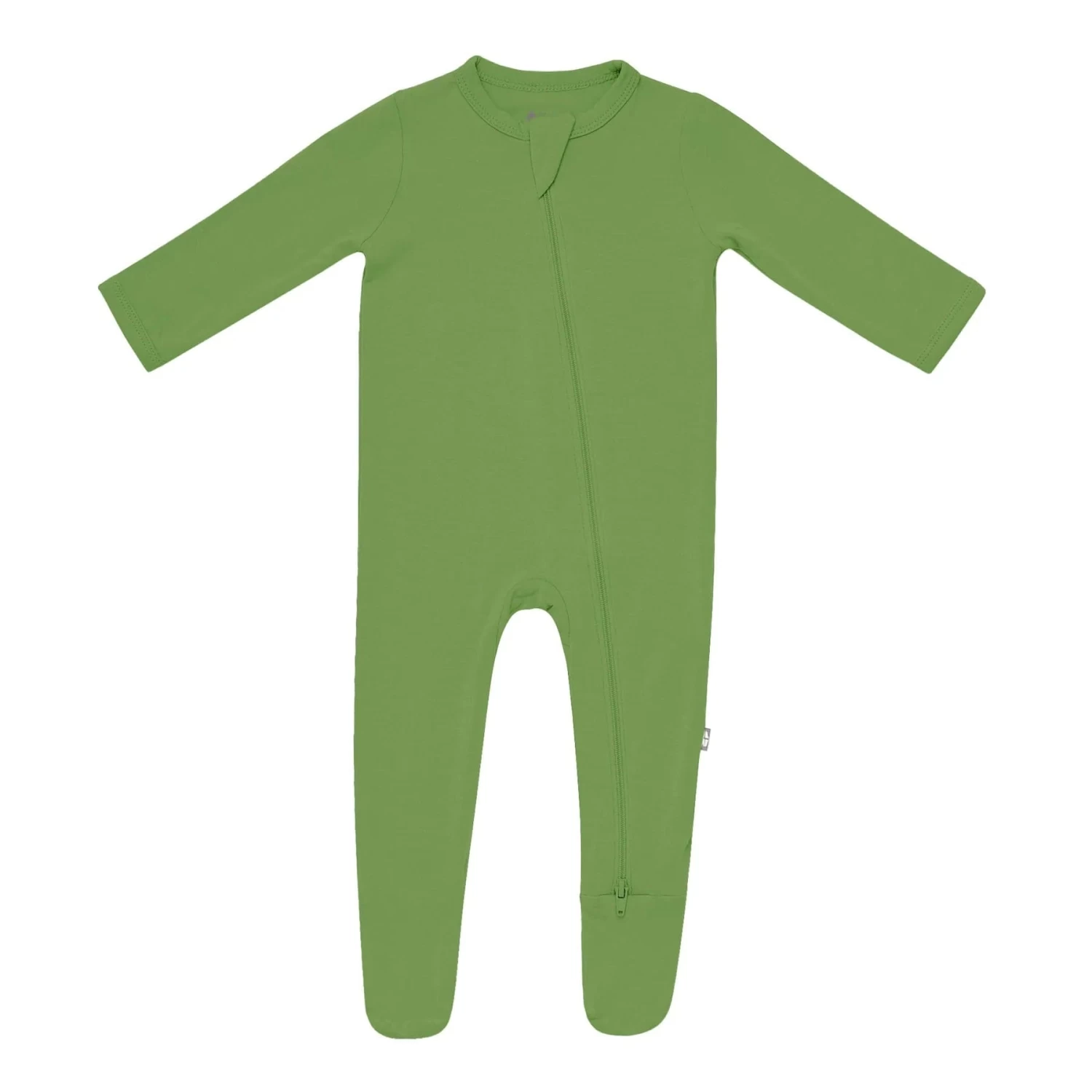 Everything you love about our soft and snuggly classic footies now with a zipper! The dual zipper option makes wardrobe or diaper changes a breeze. Made from our silky smooth bamboo rayon creating a cool outfit in a rainbow of modern, earthy colors. The stretchy material gives you the option to have a snug or looser fit while still staying comfortable and stylish. For those babies starting to walk we now have grips starting on sizes 6-12 Months.